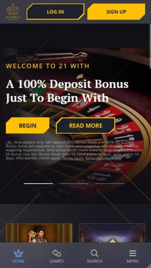 Enjoy the thrilling mobile environment at 21 Casino with no download necessary. Access a variety of games, from Slots to Bingo, on your mobile device or tablet anytime, anywhere.