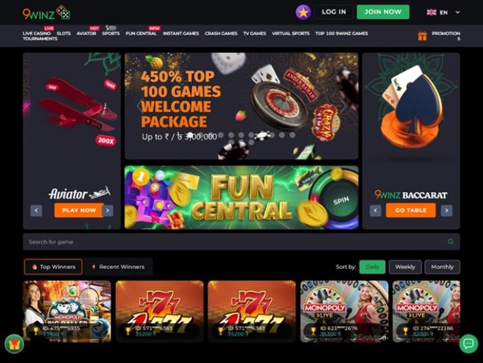9winz offers a wide variety of games from renowned content providers, including slots, jackpot slots, instant and crash games, and live casino titles. The user-friendly layout allows for easy access to different game categories.