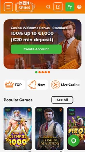 Lit by neon lights and filled with the best online slots and live dealer games, AllSpins Casino has done a great deal of work to offer something for everyone. The website greets new customers with a nice selection of welcome packages, ensuring every player can choose their perfect fit. Launched in 2024, AllSpins is not just an online casino but also a comprehensive sportsbook, available in multiple languages, accepting punters from different countries.