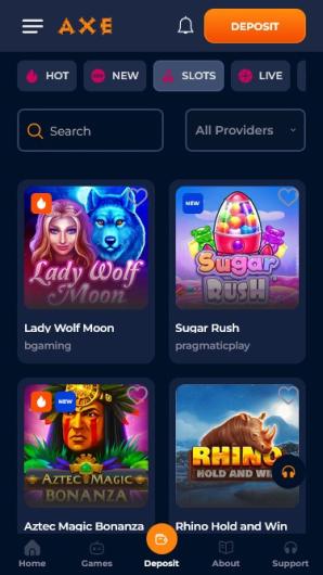 From a player’s point of view, AxeCasino’s game lobby leaves nothing to be desired in terms of content, but the same cannot be said about the way it is structured. To start with, for some reason, not all software providers available at the site are displayed on the filter bar, preventing users from seeing how massive the offering is.