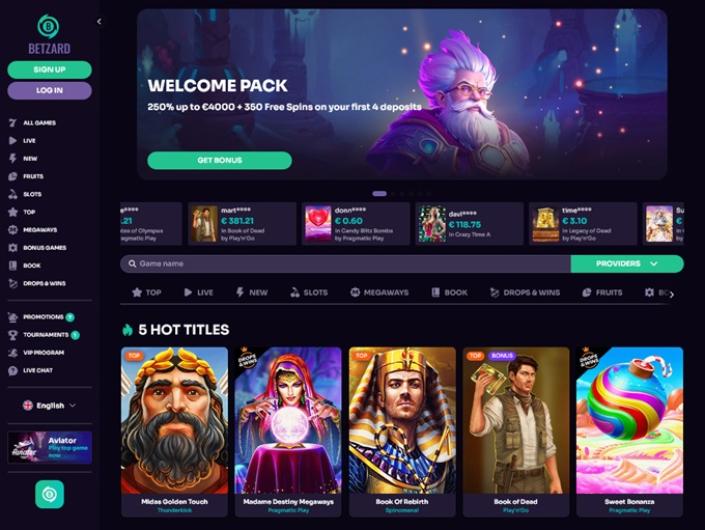 From Ancient Egypt to outer space, all popular slot themes plus sophisticated table games and live dealer games are found in Betzard Casino’s ever-growing content portfolio. That certainly isn’t a surprise, as the casino collaborates with the finest developers such as PG Soft, Ezugi, Thunderkick, Mascot Gaming, AMATIC, BetSoft, and many others.