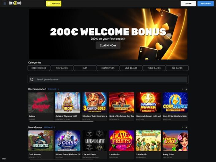 Betzino Casino is rated 392 of 1633 casinos reviewed with a score of 3.1 out of 5 after 13 votes and it has 1766 Slots offered from Big Time Gaming, Blueprint Gaming, Evolution Gaming and 28 others with an average rating of 3.6 out of 5 after 30203 votes.
