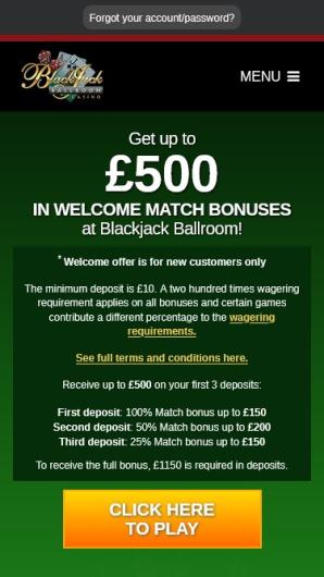 If mobile play is what you are looking for, BlackJack Ballroom is the right place to open an account. Although the website was launched two decades ago, it has gone through several upgrades and currently boasts a sleek and responsive version for smartphones and tablets.