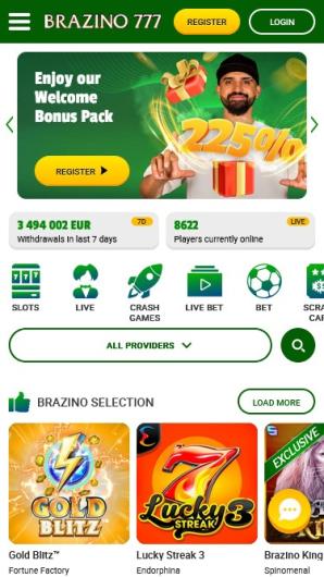 Brazino777 is rated 905 of 1633 casinos reviewed with a score of 2.7 out of 5 after 8 votes and it has 4661 Slots offered from 1x2gaming, Amatic Industries, Ash Gaming and 88 others with an average rating of 3.5 out of 5 after 135748 votes.