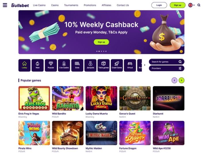 BullsBet creates a unique gaming environment, with thousands of slots, jackpots, and live casino games available. Indeed, if you have a special game in mind but can’t find it anywhere, chances are BullsBet has it. These guys partner with many game providers, like Betsoft, Pragmatic Play, Spribe, or Play’n GO. There you will also find popular live dealer games, including poker, roulette, blackjack, baccarat, and live casino shows.