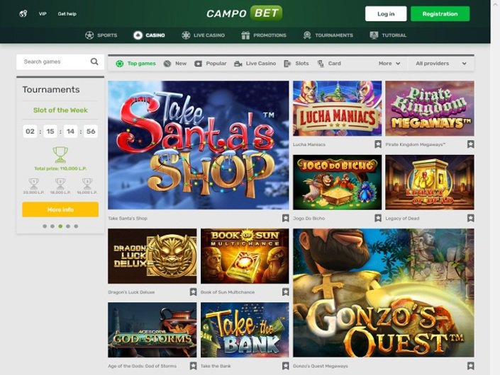 Over 30 leading providers supply hundreds of slots, card games, and live dealer games at CampoBet Casino.