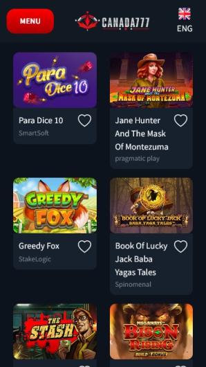 Canada777 Casino offers a diverse gaming library with popular titles from leading software developers like 1×2 Gaming, BetSoft, and Evolution Gaming. Players can enjoy slots, table games, and live casino games.