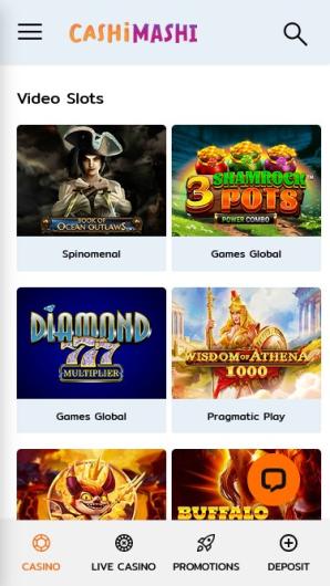 Cashi Mashi offers a wide range of games including slots, table games, and video poker. The game lobby is easy to browse with a responsive search bar, catering to all tastes and bankrolls.