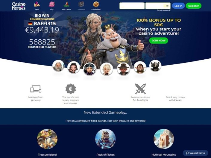 A truly unique casino adventure can be found at Casino Heroes, featuring a fantasy world with 40 regions and 40 game levels, unlike any other site you may have played before.