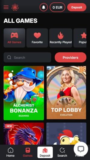 …with elegant black background, sharp graphics, and state-of-the-art design. The layout is user-friendly and provides for easy navigation. On the homepage, you will be able to filter games by popularity and type as well as by developer. This option will come in handy given the number of titles you have at your disposal in this virtual facility.