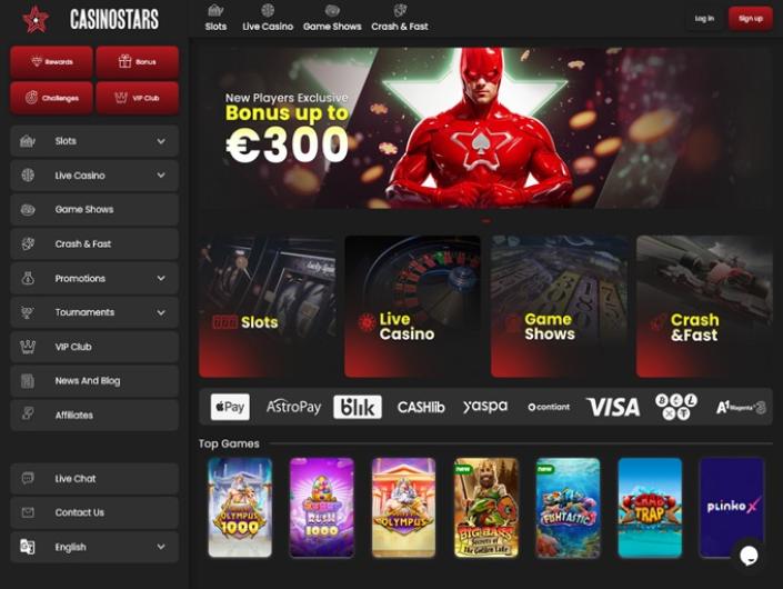 The official CasinoStars website is jam-packed with eye-catching graphics that like stars shine in a black background, drawing in prospective users. It makes sense to presume that this site, given its 2024 launch, can brag of features such as innovative payment solutions in addition to a contemporary layout.
