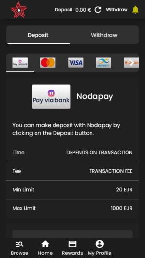 Various payment methods are available for deposits and payouts with different fee structures and limits. The casino may apply wagering requirements and fees on transactions.