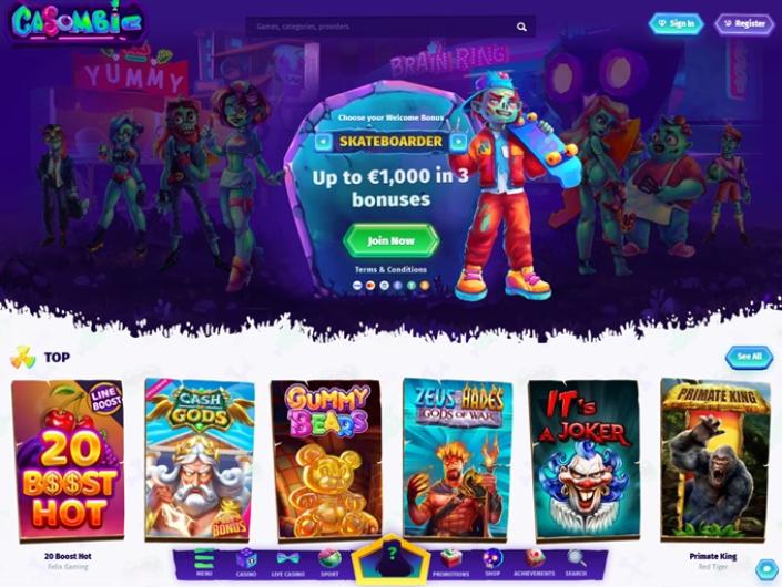 Casombie offers over 2500 popular titles from industry giants like Microgaming, NetEnt, BetSoft, and Pragmatic Play. The gaming library includes slots, table games, live casino games, jackpots, and bingo titles.