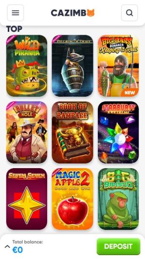 Cazimbo is a universal gaming platform with optimized interface and design for any mobile device and desktop computer. Each category can be accessed on a smartphone or tablet, ranging from casino, sportsbook, live betting all the way to challenges, horse racing or virtual sports.