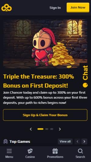 Chancer claims to be an online platform where players can engage in gaming in a safe, fair, and immersive environment. According to its website, this casino stands out due to its innovative features, loyalty rewards, high-end security, and exceptional customer service. Let’s explore whether Chancer lives up to these promises!