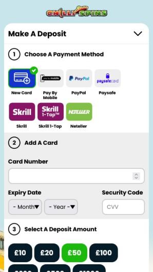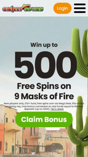 Chilli Spins offers a Welcome Bonus that gives new players a spin on a Mega Reel with their initial deposit. The site may offer extra spins and has a Trophies scheme for returning customers.