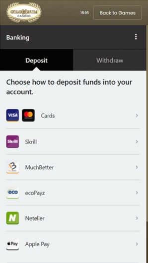 If you belong to players who like to visit online casinos while out and about, you’ll be happy to hear that Colosseum Casino’s mobile page is fully functional. It operates well on various types of smartphones and tablets.