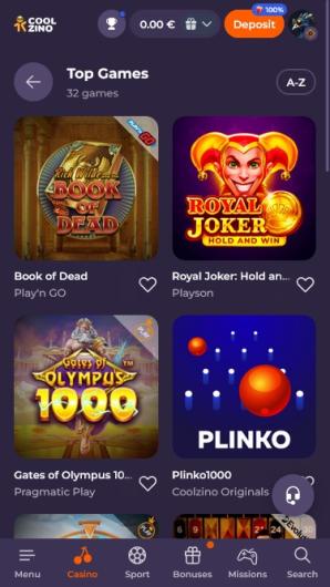 Coolzino Casino features over 6,000 games from top developers, including a wide range of slots, table games, bingo titles, and live casino options.