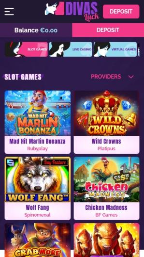 Divas Luck Casino offers a wide range of games, including slots, table games, live dealer games, and virtual and lucky games. The site features titles from reputable providers like Belatra, Play’n GO, Endorphina, Yggdrasil, and more.