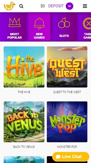 Do we hear quaking? Well, it might be coming from Ducky Luck, a casino with quite a unique theme. It’s not common for an online gaming hub to have a theme revolving around poultry, but that’s exactly what makes it fresh and authentic. And let’s not forget the richest duck other, Scrooge McDuck, that seems to be an inspiration for the appearance of this site. Vibrant, colorful, and original, it features the game lobby on the main page. At the same time, other categories are neatly separated, so navigation is smooth and easy.