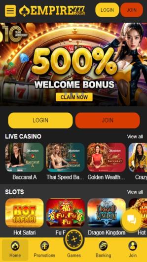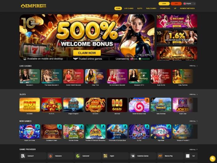 Empire777 is mainly Asia-oriented online casino, licensed under Curacao jurisdiction laws. Decidedly oriental in feel and look (and catering for clients in Thailand, Malaysia, Vietnam and Japan), this online parlor appears to be teeming with life, as a very busy homepage, packed with content will tell you. Live games, slots, table games, promotions and more is all there for the taking, as soon as you land.