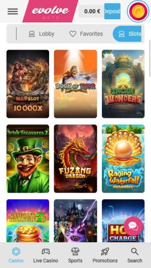 Diverse and lush gaming lobby is one of the greatest advantages of betting in Evolvebets and probably the first thing that will catch punters’ eyes in this establishment. The starting package will be appreciated greatly while weekly cashback, although a splendid offer, features higher wagering requirements.