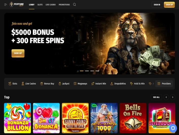 FortunePlay follows trends with a dark, luxurious ambiance and expertly laid-out content. The platform offers a smooth navigation experience and is available in multiple languages for player convenience.