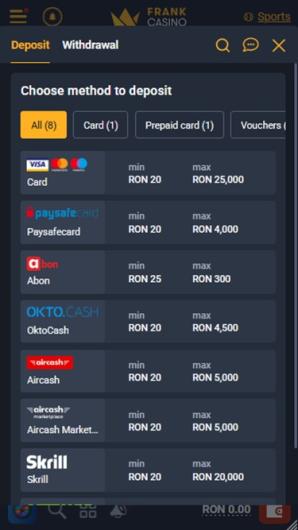 There is a wide variety of game types available. We already mentioned the sports betting section, however, when it comes to the casino section of the site, from the classic table game, over video slots, to the live dealer ones, Frank Casino has it all. There are many subcategories of games, which makes it easier to find what you’re looking for, from games with jackpots, popular and new titles to a standalone category of video poker games. A large number of iGaming software developers provide their products for the gaming library.