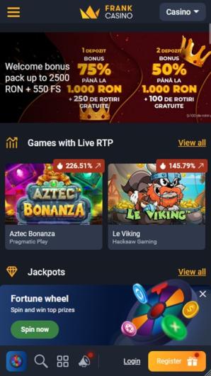Frank Casino is rated 145 of 1633 casinos reviewed with a score of 3.5 out of 5 after 107 votes and it has 6333 Slots offered from 1x2gaming, Amatic Industries, Ash Gaming and 112 others with an average rating of 3.5 out of 5 after 198214 votes.