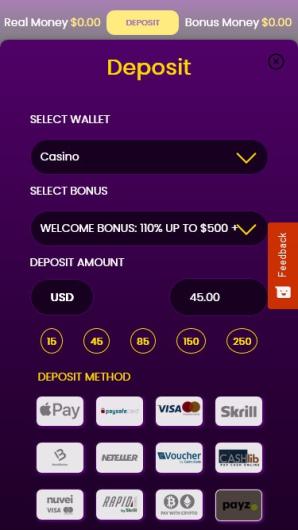 The casino offers a sportsbook section for betting on popular events and a diverse gaming library powered by top software developers.