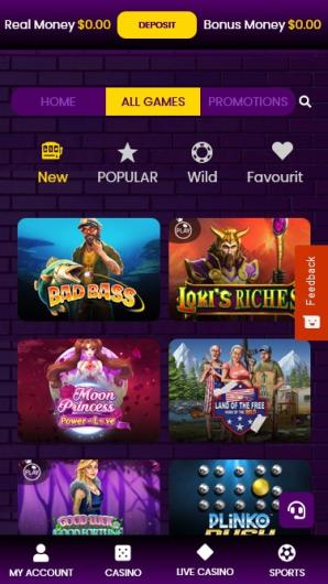 The casino is optimized for mobile play on iOS and Android devices, with most games available in demo mode.