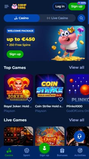 God of Coins also offers a full-fledged online sportsbook with a wide range of live sports and esports. Players can enjoy various betting markets and promotions, including a Cash Out feature for better control over bets.
