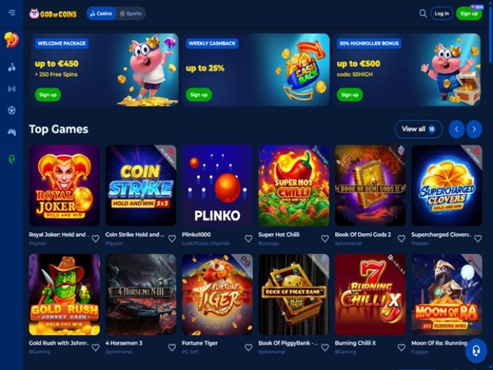 God of Coins is a cutting-edge online gambling platform, offering the best experience for both casino players and sports bettors. Accepting popular cryptocurrencies and featuring an advanced multi-lingual interface, the website invites fans of slots and live dealer games to join the joyful king on his exciting adventure full of rewarding twists and turns. Players can benefit from a wide variety of bonuses, promotions, loyalty incentives, tournaments, and lotteries.