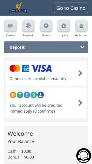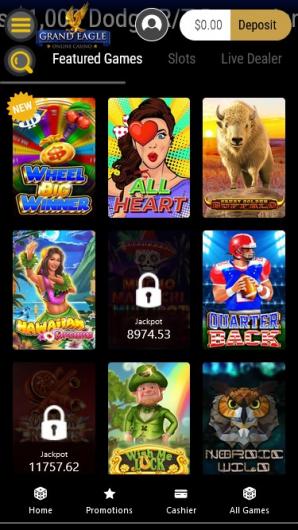 Grand Eagle Casino provides a responsive mobile experience without the need for an official app. All games and promotions are available on mobile devices with a streamlined and easy-to-use interface.