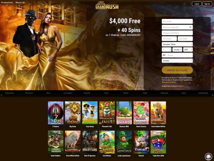 Just a single glance at the logo of this establishment is more than enough to intrigue us. Grand Rush Casino, you say? Or Gold Rush? It’s hard to make out, with those massive gold bars distracting our attention.