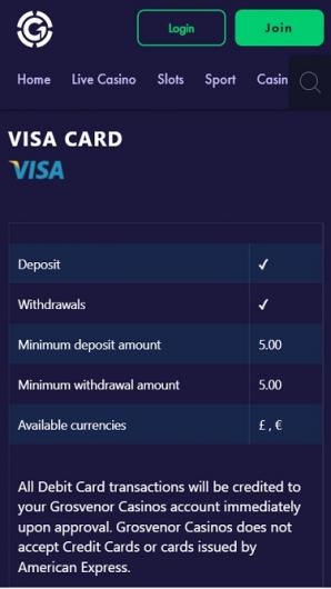 Focused on the UK market, Grosvenor Casino provides a safe, secure, and fair environment for its customers. Players can enjoy a matching selection of payment methods to suit their needs.