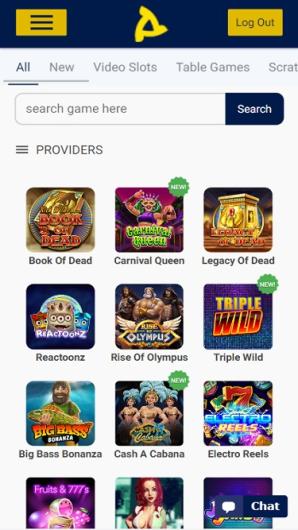 Slots – Dolphin’s Dream, Razor Shark, Viking Go Berzerk, Captain Candy, Diego El Pibe De Oro, Disc of Athina, Gonzo’s Quest… Table games – European Roulette, Dragon Tiger, 21 Blackjack, Atlantic City Blackjack, Golden Chip Roulette, Big Win Baccarat, Deuces Wild, American Poker Gold… Live games – Dream catcher, Lightning Baccarat, Craps First Person, Free Bet Blackjack, First Person Mega Ball, Dragon Tiger… there is also a section dedicated solely for Jackpots, Scratch cards and a Bingo room as well!