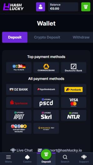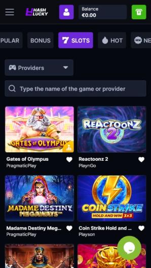 HashLucky Casino offers nearly 4,000 games from top providers in the online gambling industry. The slot collection is extensive, and there are also instant win games and a well-curated live dealer lobby.