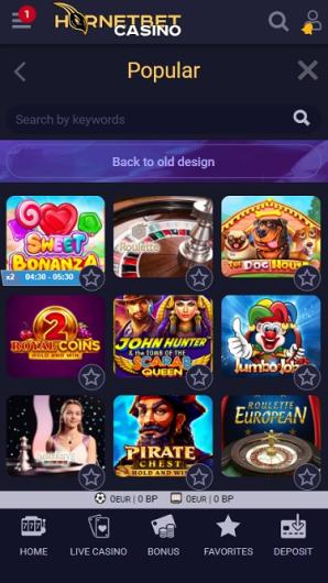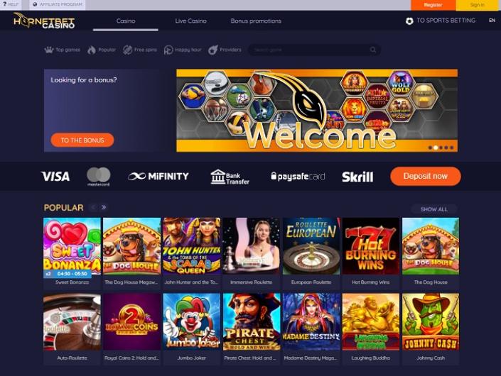 HornetBet Casino comes with an amazing gaming library which is separated in two large sections.
