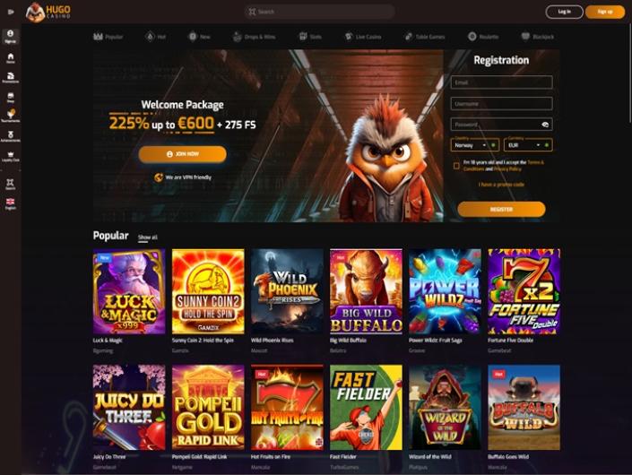 Hugo Casino caters primarily to players from Norway, Japan, New Zealand, and Ireland, offering a tailored experience for individuals from these regions.