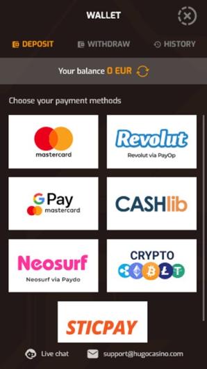 Hugo Casino supports cryptocurrencies for faster and secure transactions, providing players with more flexibility in banking operations.