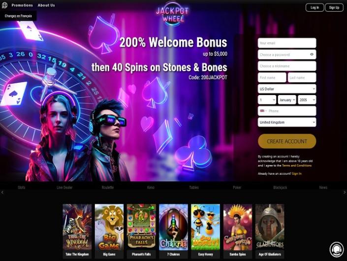 Being aware that the number of consumers utilizing portable gadgets to access their favorite games rapidly surpasses desktop users, entertainment establishments need to put special focus on the mobile version of their site. Provided that there’s a reliable internet connection and some mobile gadgets, the entire universe of Jackpot Wheel casino will be just several clicks away. The website is compatible with all operating systems, with a bilingual interface (English and French), so you can explore all the sections of the site while out and about. Thanks to the intuitive interface and the absence of unnecessary details, one can expect easy navigation through all the sectors.