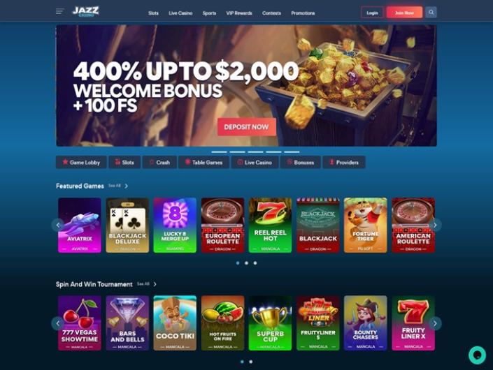 JazzCasino offers over 2000 popular titles from well-known software developers in categories like slots, table games, live casino, bingo, Keno, scratch cards, and sportsbook.