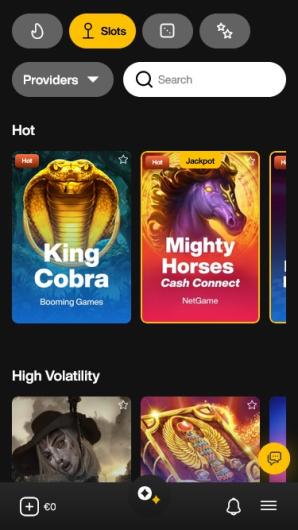 Explore various categories of slots, table games, and live casino games.