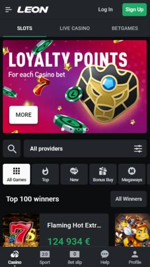 Leon Casino offers a Loyalty Program where players earn bonus points for their bets, which can be redeemed for cash. Basic rules include earning points for net winnings and regular betting activity.
