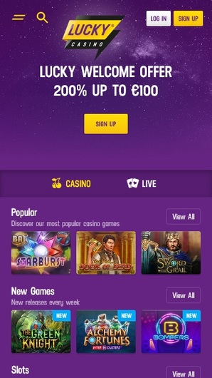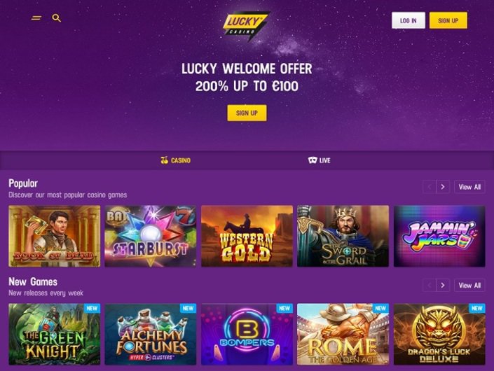 In a galaxy far, far away… LuckyCasino’s online gaming platform is concealed! An eye-pleasing picture of a galaxy, in relaxing purple tones, is the first thing you will see when you land on this page. Pretty simple looking, but at the same time modern and cozy, this venue is offering a nice range of content and promotions. LuckyCasino is licensed in Sweden and Malta and offers a variety of games, counted in thousands. The software developers behind this venue are superb, ensuring an amazing gaming session. The casino also provides a great welcome bonus on the first deposit with no wagering requirements.