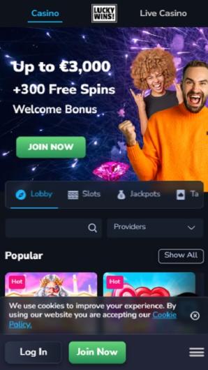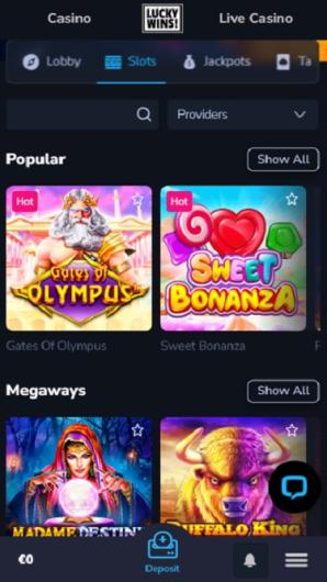 LuckyWins offers a wide range of popular slots, jackpots, live casino games, game shows, and instant wins.