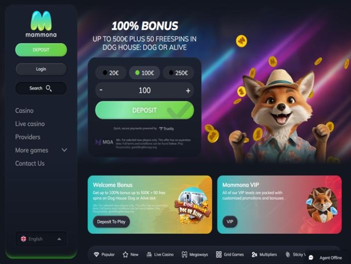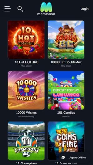 Mammona Kasino is rated with a score of 2.4 out of 5, offering a wide selection of slots from various developers.