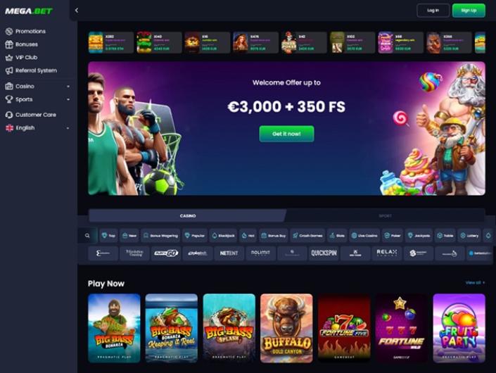 Although it features the word Bet in its name, Mega.Bet gambling platform is not only reserved for devoted sports betting fans but also a fantastic online casino, boasting numerous game types, from slots to table games, crash games, and live dealer titles!