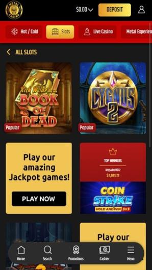 The mobile version of Metal Casino offers the same features and layout as the desktop site. Players can enjoy their favorite games and promotions on the go with excellent optimization for iOS and Android devices.